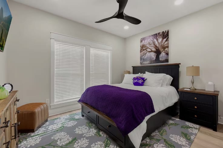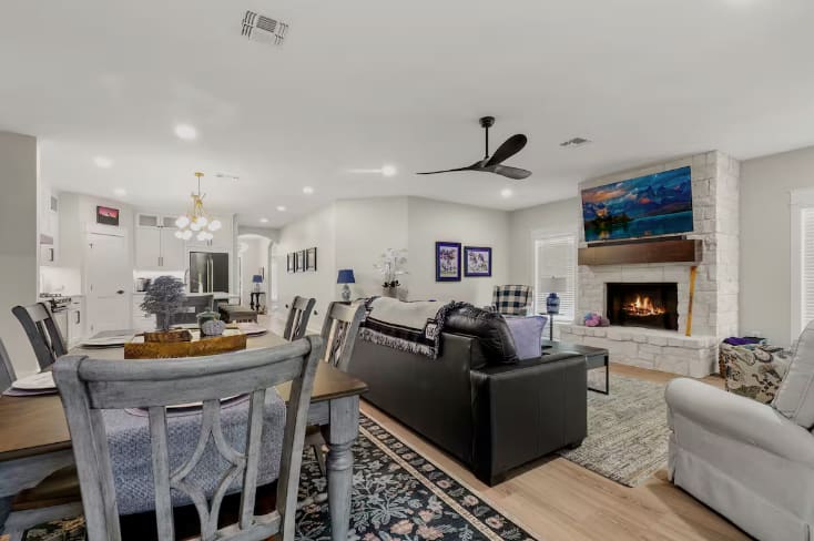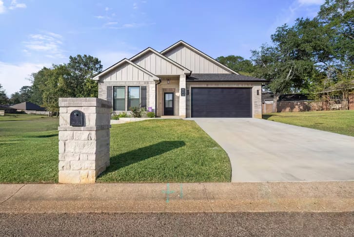 About this space Be prepared to relax and enjoy your peaceful stay at Lumberjack Lodge, a brand new home. Reflect on what makes Texas special, as well as Nacogdoches, and SFA. The gourmet kitchen will be a perfect place to prepare your home cooked meals, or enjoy many of the outstanding restaurants in Nacogdoches. You will be less than 1 mile to the historic downtown Nacogdoches, and 1 mile to Stephen F. Austin State University. The space The house is well equipped for all needs. In the kitchen, you will find a gas stove and gas oven, along with a lovely Coffee (Keurig) and Tea Bar, including a frother. In the pantry you will find the Toaster Oven and Microwave. Within the kitchen, you will find full set of dishes, glasses, cups, as well as stainless steel cookware, and a hand mixer. It is fully stocked with dishes and pots and pans, storage containers, measuring cups, measuring spoons, knife set, etc. The Living Room and All bedrooms have ceiling fans. The dining table seats 6 people very comfortably, and 4 people can sit at the kitchen bar. The bedrooms all have top of the line Sealy pillow top mattresses, along with luxury linens. There is 1 King Bed and 2 Queen Beds in the bedrooms. The bathrooms all have luxury linens, along with body wash, shampoo and conditioner. In addition, there are make-up mirrors in each bathroom, along with a blowdryer. The utility room includes a full size washer and dryer which can be used by guests, and washer pods will be provided. An Iron and ironing board is located in the largest walk in closet. The gas grill on the back patio can be used by guests.