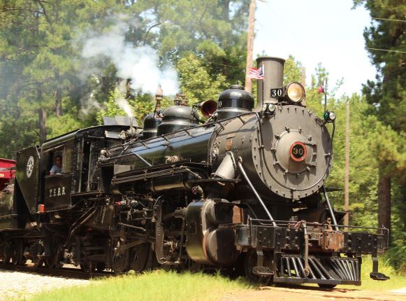 The Texas State Railroad is a historic 25 mile railroad that runs between Rusk and Palestine, Texas. Founded in 1881 as a freight line, the railroad today takes passengers on a breathtaking adventure through native forests as it rumbles over babbling streams. Special train excursions include the holiday-themed Polar Express and other seasonal special activities.